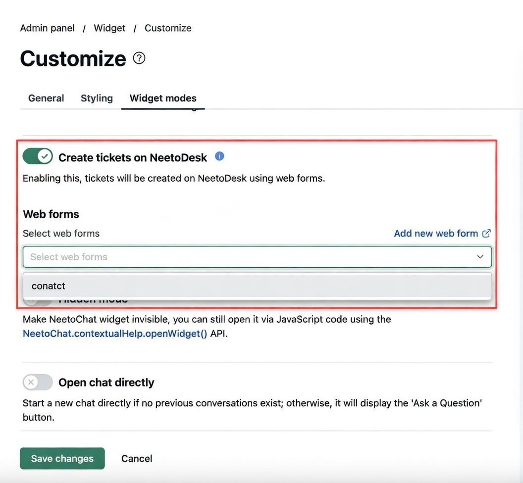 Enabling this feature will allow the customers to create tickets in NeetoDesk using web forms.